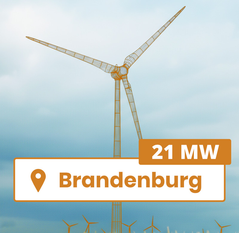 L'offerta include un progetto eolico direttamente nel Brandeburgo con un potenziale totale di 21,6 MW (3 turbine eoliche). Attualmente, due siti con una capacità complessiva di 13,2 MW sono garantiti secondo la legge urbanistica tramite una decisione preliminare in conformità alla Sezione 9 (1a) del Federal Immission Control Act.